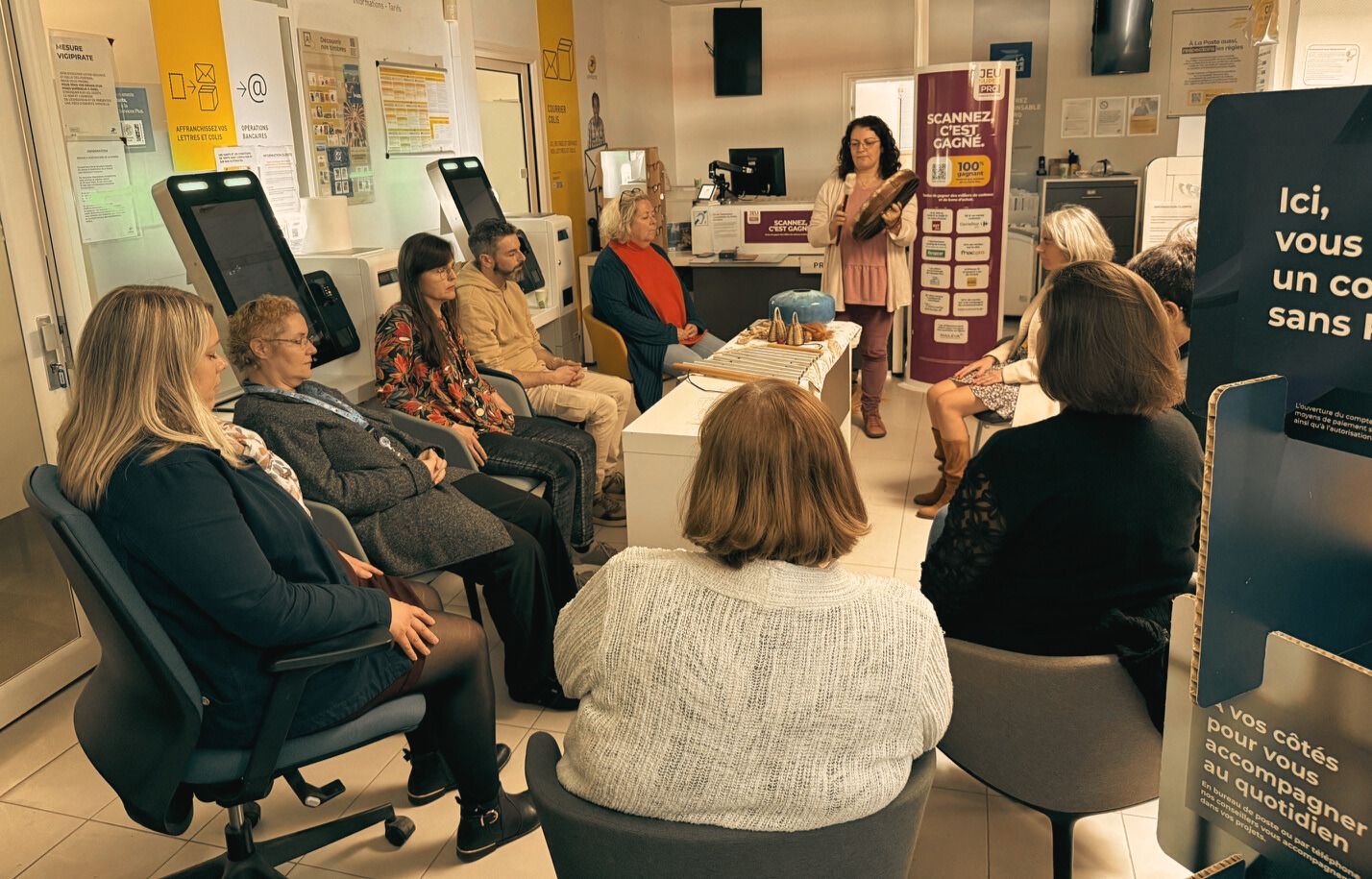 Cette semaine, elle a animé une Relaxation sonore au bureau La Poste de Bellevue, dans le cadre de la Qualité de Vie au Travail.